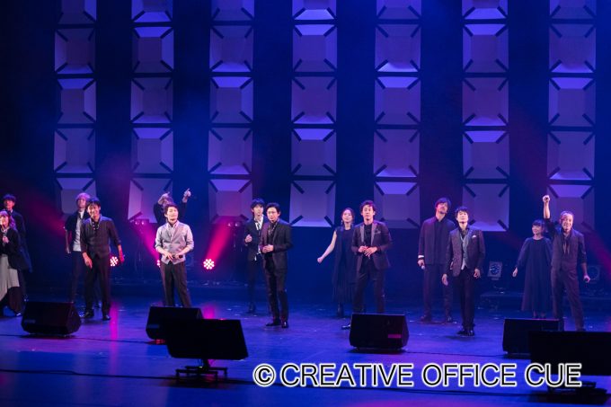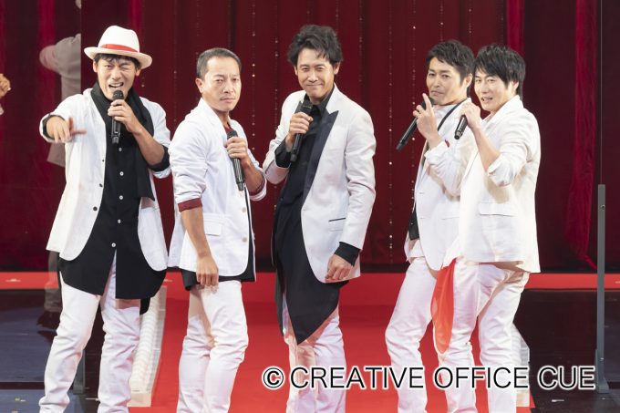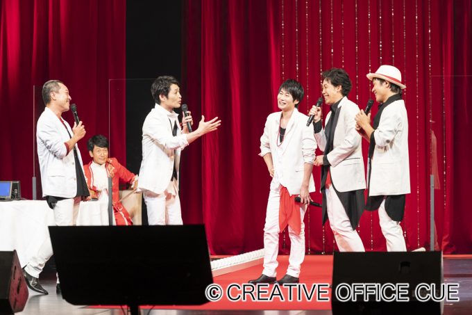 まずはライブパートで幕を開けると、鈴井貴之、TEAM NACS(森崎博之、安田顕、戸次重幸、大泉洋、音尾琢真)らが続々と登場し、オフィスキューメンバー総出演の熱いステージを披露。