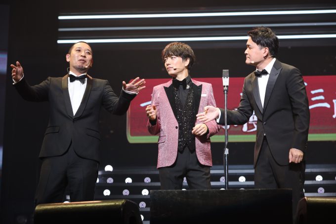 次に登場したのは、山崎とバラエティ番組で共演していた千鳥の2人。彼らは“最優秀お笑い賞”を受賞。3人でMr.Childrenの「Tomorrow never knows」を歌ったり、まさかの3人で漫才に挑戦したりと、その器用さをいかんなく発揮。ミュージカルを取り入れたクセの強い漫才では、大悟がフリになってしまうほどの爆発力で会場を沸かせ、山崎もとても嬉しそうだった。