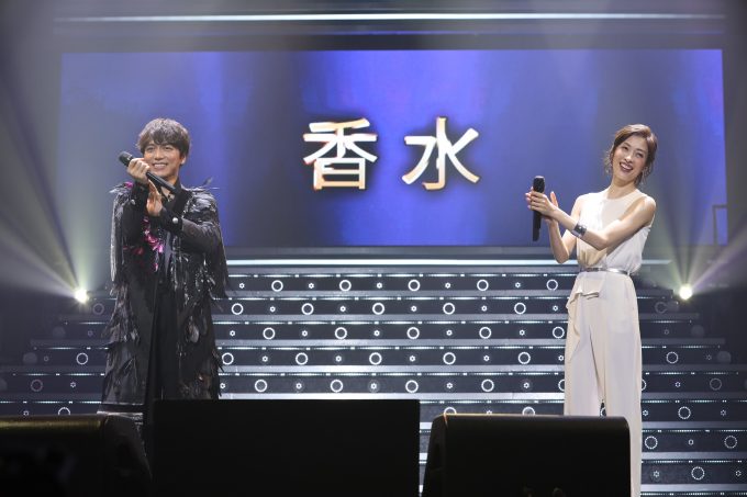 さらには“最優秀トップスター賞”として、宝塚歌劇団退団後、初の有観客音楽イベントへと出演となった明日海りおが登場。それまでバラエティ色の強かった空気を一変させ、2人の共通点である『ロミオ&ジュリエット』『エリザベート』から「世界の王」「闇が広がる」を熱唱。2人の圧倒的な歌に、多くの人がうっとりと心を奪われていた。さらに意外なのが今年大ブレイクした『香水』をデュエット。2人だからこそのアレンジで歌い上げ、会場を沸かせていた。