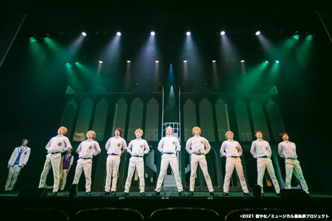 エドガー・レドモンド役の佐奈宏紀は、歩いた後に花が咲くかのような優雅さ。クリケット大会での“紅薔薇竜巻”(クリムゾントルネード)は必見。ハーマン・グリーンヒルを演じる田鶴翔吾はラグビー代表選手にいそうな頼れるキャプテンタイプ。正義感が強い表情もグリーンヒルっぽい。シエルが属する寮の監督生ロレンス・ブルーアーを演じるのは里中将道。立ち姿といいメガネを指でクッと上げる仕草などインテリジェンス男子そのものだった。グレゴリー・バイオレットは後藤大。何を考えているのかわからない雰囲気を怪演。一方ダンスのキレが半端なくてビックリ!