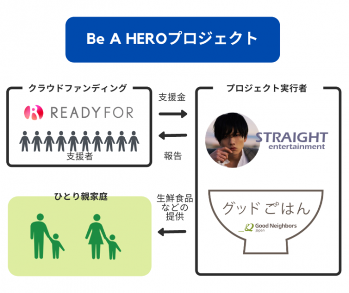 「はい。ひとり親家庭に食料を支援されている、グッドネーバーズ・ジャパンさんの運営しているフードバンク“グッドごはん”というものを拝見しまして、“これだ!”と思ったんです。ただ、窓口も必要となるので、社会貢献活動のクラウドファンディングをされている「READYFOR」さんにお声がけをさせていただき、この三角形のチームでプロジェクトの準備に入りました」