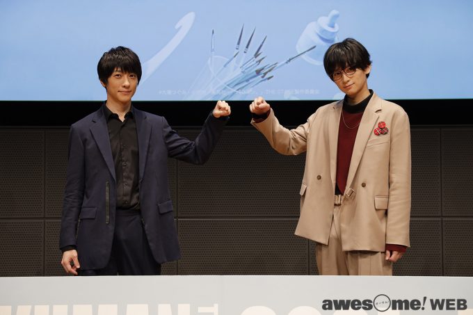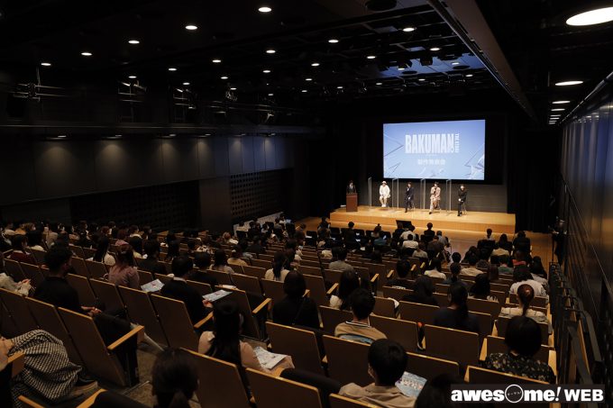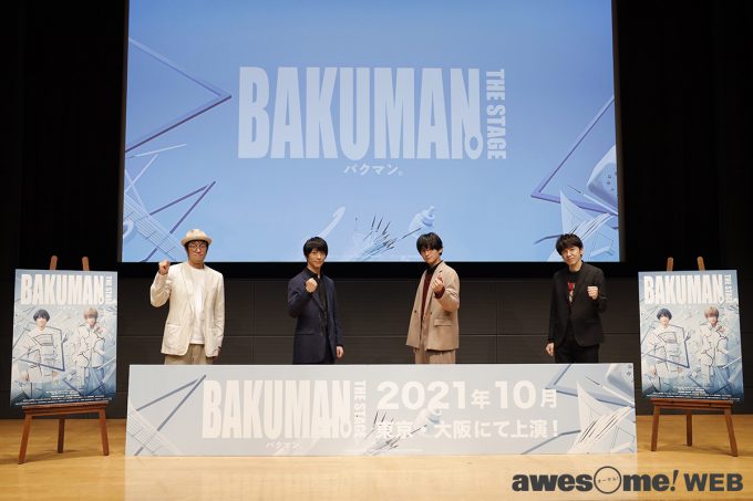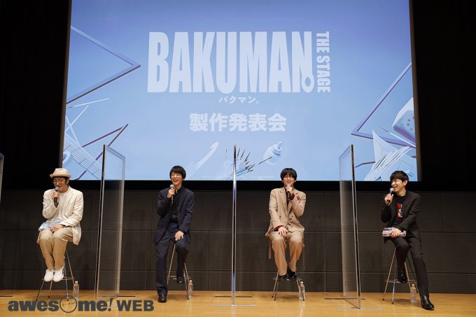 今回の製作発表には、アニメ・演劇などの表現を学ぶ学生や劇団の研究員など、「バクマン。」のように、夢を追いかける若者達も招待されており、登壇した4名に対するQ&Aコーナーも設けられていた。その中で、アニメやマンガといった“原作を(作者から)お預かりする”2.5次元作品に関わる意識と覚悟を感じさせる受け答えからは、プロとして第一線で走り続ける4人の熱意が強く伝わる。