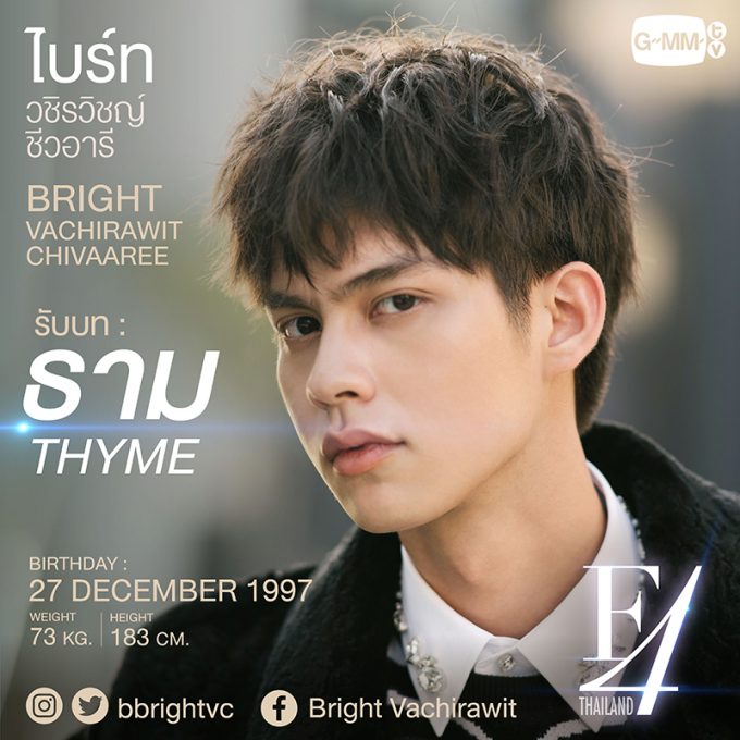 今作でBrightが演じるのはThyme(道明寺司)役。