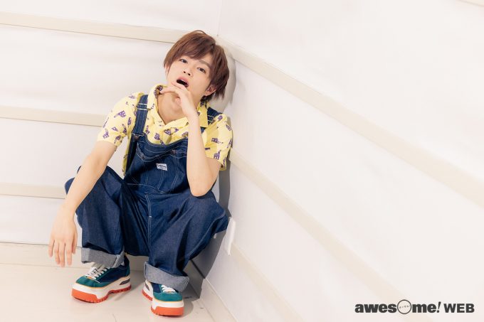 Costume ⇒シャツ¥6,800 O.K. /ADONUST 03-5456-5821、オーバーオール¥27,280 WORLD WORKERS/BIG JOHN 086-477-3800、スニーカー¥14,000 UMBRO/デサントジャパン お客様相談室 0120-46-0130