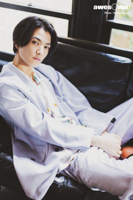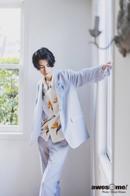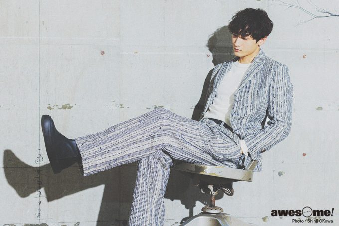 渡邊圭祐◆ジャケット(SHAREEF) 49,500円、パンツ(SHAREEF) 27,500円/Sian PR 03-6662-5525、 シャツ(AUI NITE) 29,000円/株式会社cheeekykids 050-1564-2462