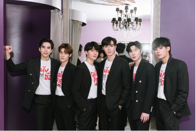 Zee「僕はN’(NuNew)のことをすごく誇りに思うんです。このシリーズの主題歌ですし、N’も歌が上手だしね。最高だよ(見つめ合いながらNuNewと握手)」