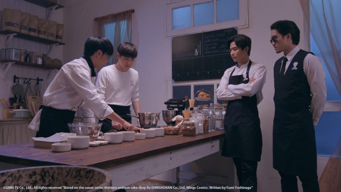 ©GMM TV Co., Ltd., All rights reserved ”Based on the comic series Western antique cake shop By SHINSHOKAN Co., Ltd. Wings Comics. Written by Fumi Yoshinaga”