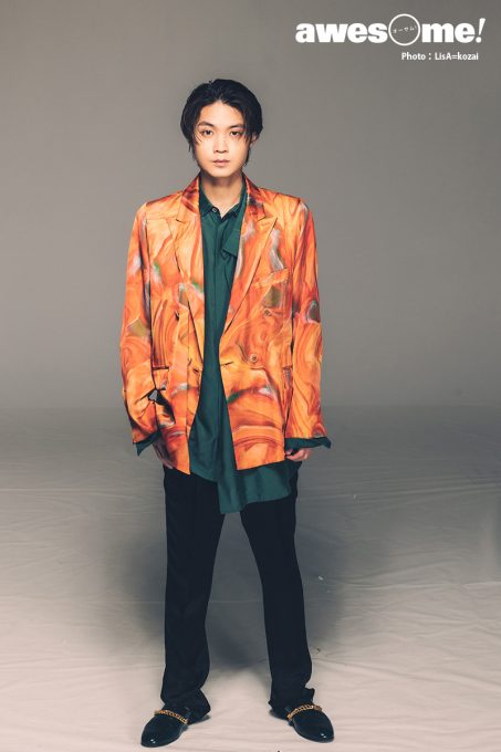 Costume ⇒kenichiのジャケット ¥64,000、APOCRYPHAのシャツ ¥30,800、シューズ ¥25,300(すべてSakas PR ☎︎03・6447・2762)、FUJIのパンツ ¥49,500(PR01.TOKYO ☎︎03・5774・1408)
