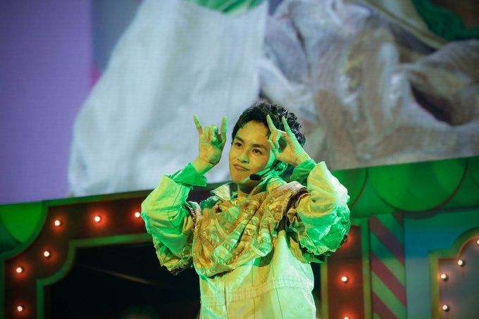 発車のベルを合図に、メンバーが登場。リョウガの「8号車! 会いたかったぜ!」という声からスタートしたのは「a kind of love」だ。はしゃぐカイが「ハート作って! 作って!」と促した瞬間、「もう大丈夫です!」と引き上げ、最初から爆笑を誘うスピードはさすが。全員が全力で変顔をする姿に自然と笑顔が溢れてくる。そうそう、これが、超特急のライブだ。
