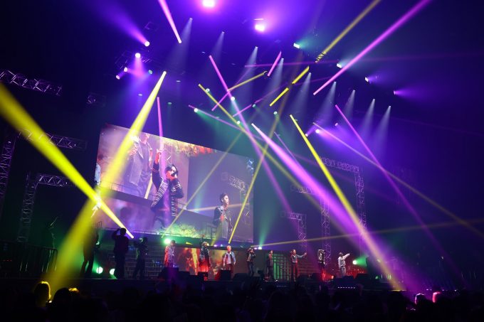 続いて、鈴蘭チームがステージに。25日(木)昼の回では、山口孫六役の八木、伊東カムイ役の木村が、岬麻理央「通称:ラオウ」役の三上とともに登場。木村が「鈴蘭もこのライブに参戦する!」と高らかに宣言。25日(木)夜には三上に加え宮内幸三[通称:ビンゾー]役の板垣、瀬田完介役の高橋が登場し、板垣は「横浜アリーナなんて俺一人で十分なんだよ! 今日髪切ったし!!」と謎の理論で煽る。鈴蘭のテーマを歌うBALLISTIK BOYZが登場すると、三上が「BALLISTIKは俺のダチだ」とオーラを放ち、「We never die」で鈴蘭の圧倒的な強さを体現するパフォーマンスを見せた。