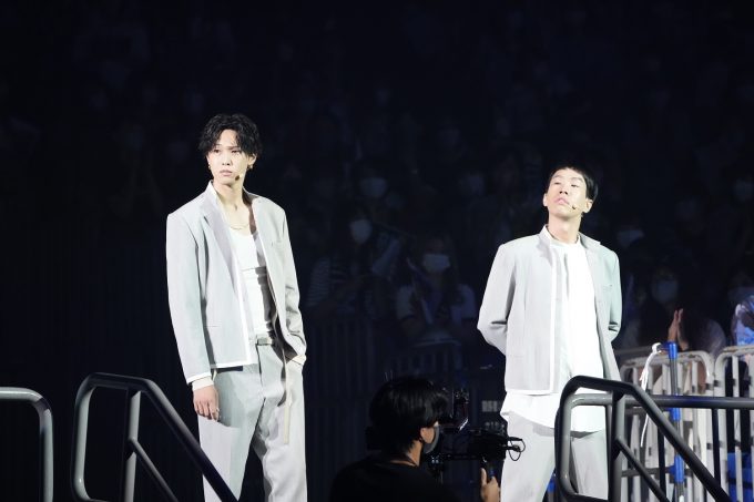 永沼「こんばんはーBE:FIRSTでーす!!さっき昼終わりにBE:FIRSTの他のメンバーと初めて会って、『(加入しても)いいよ。そのかわり基礎からちゃんとやってね』と言われました。(笑)BE:FIRSTファンの皆さんこれからよろしくお願いします! 今回せっかく横アリに来たからランニングマンくらいできるようになりたいと言って、ダンスリーダーの陣くんに教えてもらって練習しました!今日の昼公演で味をしめた決めゼリフでやります。『みなさん、サボテンのことは嫌いでも、HiGH&LOW THE WORST Xのことは嫌いにならないでください!』(と叫び、独特なランニングマンを披露。教えた陣からは「下手になってます!」と辛口評価)横アリのステージに役者をやっていて立つことなんて無いので、さっきの『Wings』とかも泣きそうになってて。ここに来れたのはここにいる皆様全員のおかげです。本当にありがとうございました!」