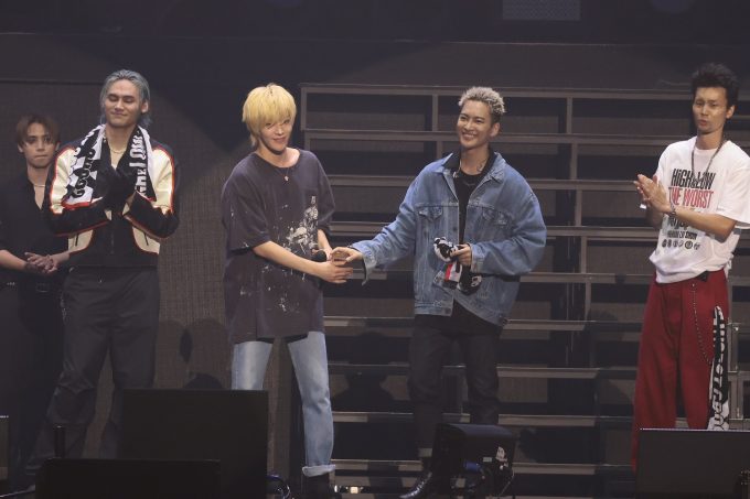 高橋「僕自身、2016~17年に『HiGH&LOW THE LIVE』というドームツアーにサポート側で同行させていただいたことがありまして、当時まだ高校生だったんですが、その時から「HiGH&LOW」という作品とLDHのアーティストさんたちにすごく憧れを持っていて。そこから5~6年の月日が経ってこうして憧れの方と同じステージに立てていることを誇りに思います。尊敬できる先輩たちばかりで、ヘンリーくんに憧れてキックボクシング始めたりしてます。皆さん引き続き『HiGH&LOW』シリーズの応援よろしくお願いします!」