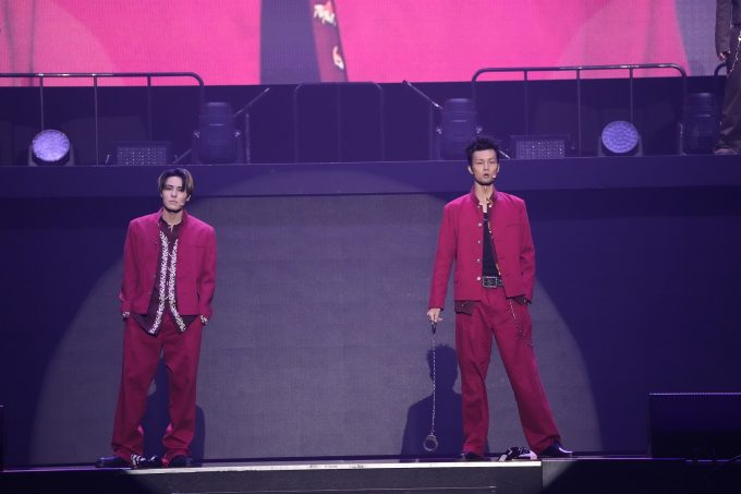 次に登場したのは、天下井公平役の三山率いる【三校連合】。砂防天久[通称・サボテン]役の永沼による呼び込みで、映画本編での三校連合が集結してくる様子を再現。最後に登壇した三山が「横アリの皆さーん、黙って俺についてくりゃ上からの絶景を見せてやるよ!」と叫び、MA55IVEによる「RIDE OR DIE」で会場を煽りまくる。
