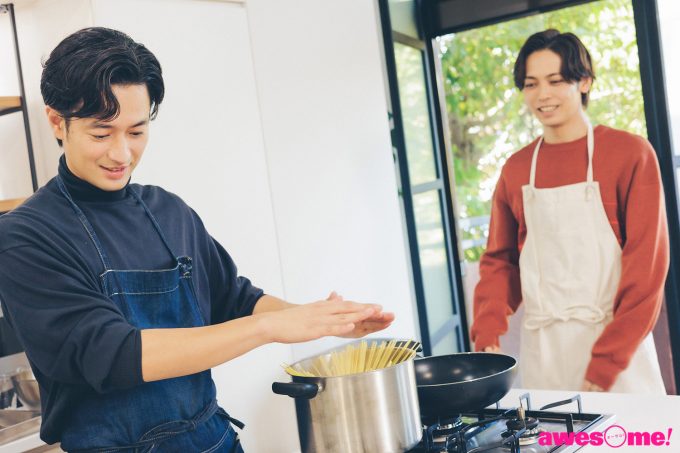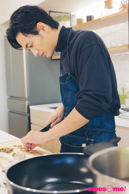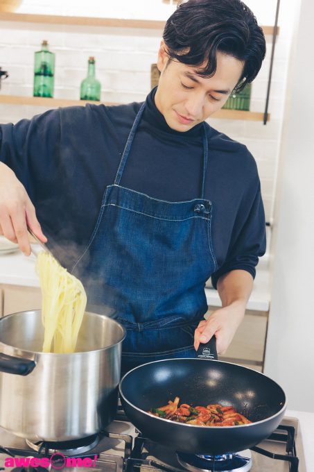 調理をしている間、料理にまつわるエピソードも明かす。普段から時間がある時は料理をしていて、基本的には「僕が食べたいもの(笑)」を作っているそう。時短料理は作らず「僕は生活のために料理をしているのではなく、どちらかと言うとリラックスするために作っているので、時短料理だと作る意味がないんです」と笑う。