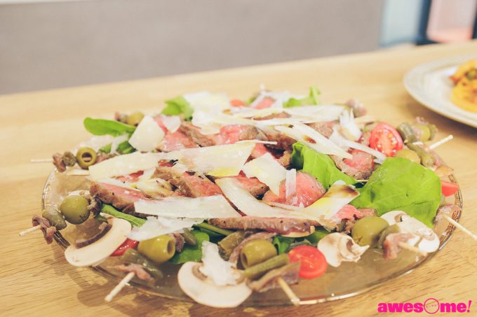 ピンチョス、牛肉のタリアータ