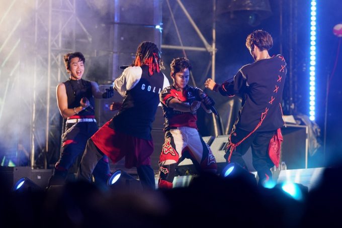 続く『ลองคุย(TRY)』では、メロウな曲でガラッと空気を変え、それぞれがより客席へ近いステージの端まで行き、よりお客さんへ届けようという気持ちが溢れているのが伝わってくる。これまで夢にまで見た大きなステージで、よりコミュニケーションを取ろうとする気持ちは、きっと多くの人に伝わったはずだ。次第に会場は手を左右に振り始め、美しい光景が広がっていく。その光景を気持ちよさそうに観ているGOLIの姿が印象的だった。