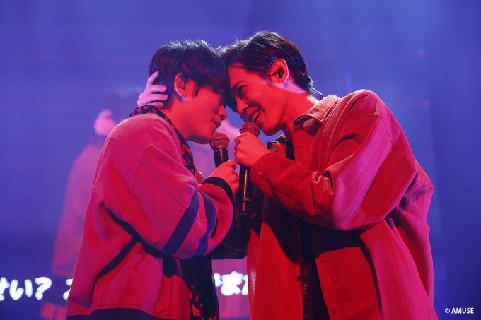 楽しみにしているファンも多い恒例のゲームコーナーでは、公演ごとに違った内容に挑戦。最終公演は定番とも言える「キュンファイデスマッチ」を行なった。シチュエーションに合わせた胸キュンセリフを言って、誰のものが一番キュンとしたかを競うのだが、どのペアも甘いセリフで接戦となり、兵頭&本島、甲斐&青山ペアでの決戦投票に。