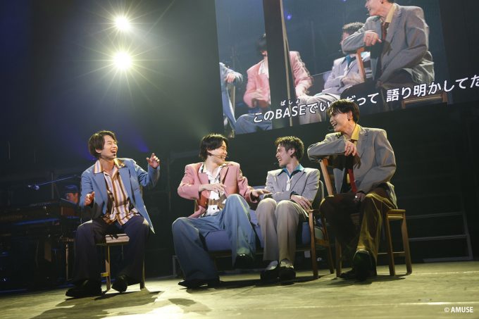4曲目「OVER THE RAINBOW」を全員で歌い終えると、最初のMCタイム。「アテンションプリーズ!『Amuse Presents SUPER HANDSOME LIVE 2024 “WE AHHHHH!”』へご来場、いや、ご搭乗いただき、誠にありがとうございます」と、今回の“機長”という名のMCを務める太田将熙が挨拶し、続いて、同じく“機長”の山﨑光が「メンバー一人ひとり挨拶していきましょう」と促し、それぞれの個性が覗くコメントをしていく。