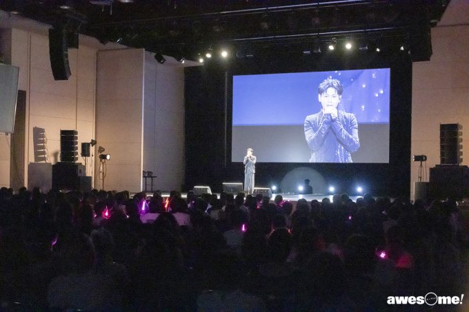 お着替えの間には、スクリーンで過去の来日の際の映像が。クールだったりキュートだったり、Singtoさんの素敵な姿が次々と映し出され、懐かしさも感じながら堪能させていただきました。再び衣装替えをして赤いカウチン風カーディガン姿で登場すると、ファンからの質問コーナーに。
