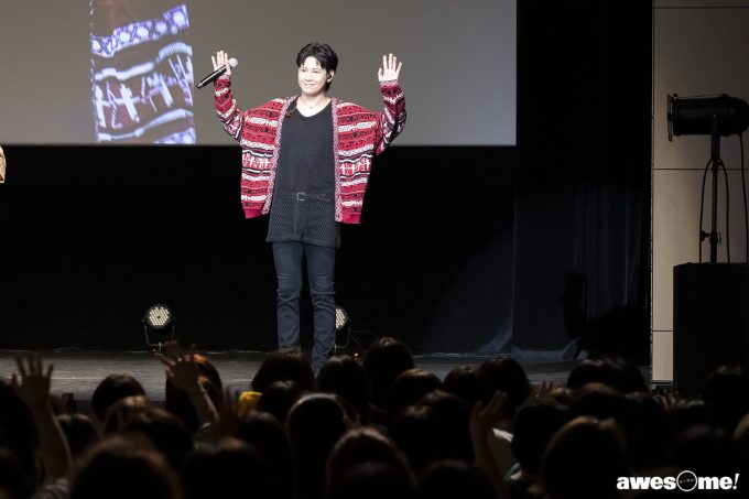 続く “名探偵Singtoの職業当てチャレンジ!”コーナーでは、「名探偵コナン」を彷彿とさせるビジュアルで登場! もちろん、会場中の「カワイイ~~~♡♡♡」を独り占め。「身体は大人ですけど心は子供です!」と言うと、さらに拍手が倍増! しかし、ファンの方の職業を、3つだけ質問をして当てるというこのゲーム。名探偵でも推理するのがむずかしかったらしく、かなり悩んで、苦戦していたSingtoさん。最後、3人目の方の職業が司会者であると当てて、とっても嬉しそうでした!