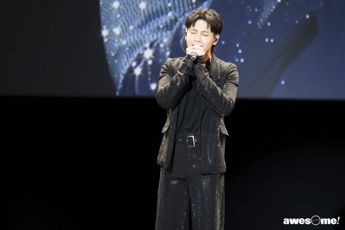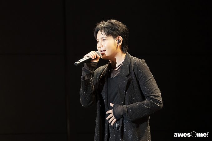 自身が主演したドラマ「He’s Coming To Me~清明節、彼は僕のお墓の隣にやって来た」の主題歌「ให้รักปรากฏตัว」のイントロでステージに登場したSingtoさんは、黒のラメ入りセットアップでちょっぴりセクシー。ファンからの熱い声援に、ハニカミ笑顔を見せる。両手でマイクを持ち、優しい声をホール全体に響かせ、サビは瞳を閉じてエモーショナルに…。うっとりと聴き入るファンに深くお辞儀をし、胸に手を当てながら「ありがとうございます」と日本語で感謝を伝えた。