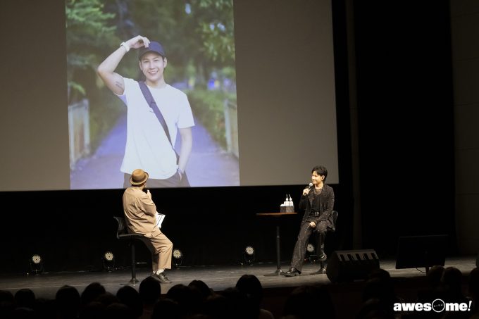 そしてまずは“Singtoの夏の思い出”のコーナーへ。本人提供によるオフショット感満載の写真がステージ上のスクリーンに映し出され、Singtoさんと一緒に眺めながら、写真にまつわるエピソードを語ってもらう。1枚目はタイの公演で友達に撮ってもらったというラフな1枚。「プライベートでポーズをとる時は、手をどうしたらいいか戸惑ってしまいます」とSingtoさん。だいたいは手を頭の上に乗せたり、ポケットに手を入れたりするらしいです。 また大きなツバの麦わら帽子をかぶり視線の先を指さしているのは、明らかに大好きな『ONE PIECE』を意識した1枚。そこから好きなキャラクターの話になり、ボア・ハンコックとブルックが好きということが判明。「なぜブルックかというと、お化けとか幽霊のキャラクターが好きだからです。ポケモンも、ゴーストタイプが好き」と、好きなアニメの話をしている時はいつも以上に目が輝いている。