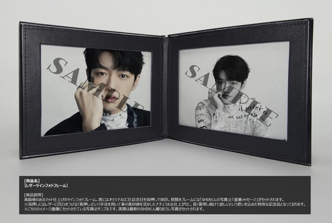 スペシャルお土産は”レザーツインフォトフレーム”で、見開きフレームには「SHINくんの写真」と「直筆メッセージ」がセットされる。