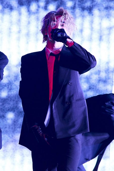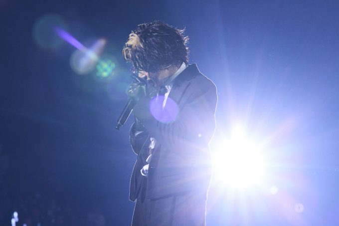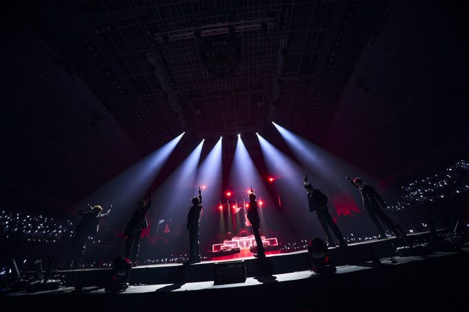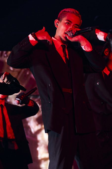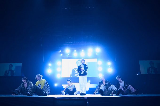 最後に新曲を披露してくれた。八村主演の映画『他人は地獄だ』の主題歌「HELL FIRE」は、これまでの雰囲気が一転、暗く湿度の高い場所に瞬間移動したかのようだ。八村の声にゾクッとさせられた後は、メタルサウンドの不気味な世界観に飲み込まれる。シャウトは、もはやスクリームにしか聴こえない。最後は6人とも跪き、仄蒼いライトの中に消えていった。