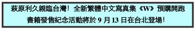 俳優・萩原利久、2nd写真集「W」の中文繁体字版が、 遂に台湾にて発売決定! 9月13日 台北にて、発売記念イベントを開催!