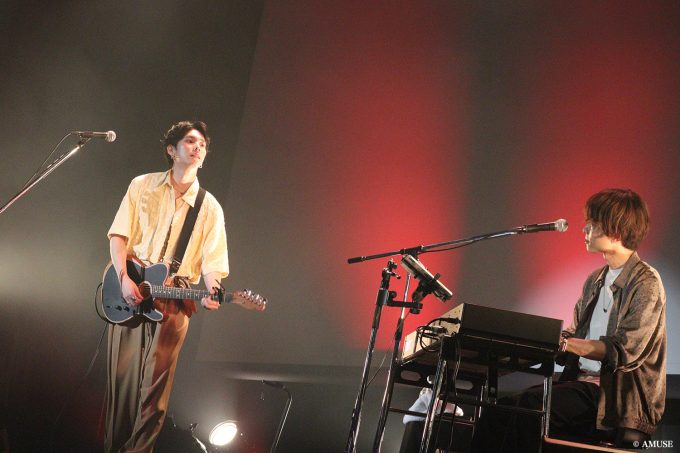 共にツアーを完走した相棒・杉本雄治(ONCE)を呼び込んで、2人で本当に本当のファイナルを寂しがる光景が微笑ましい。ツアーのために杉本がアレンジした「夢中」を1曲目に選曲、最大熱量で届けたのはリスペクトであり、愛だなと思う。エモーショナルなヴォーカルと歌心溢れる鍵盤と力強いクラップ、横浜ランドマークホールにいる全員で作り上げた「弱虫」。「みなさん、過去イチ盛り上がってくれますか!」なんて煽りにも一切負けない素晴らしきコール&レスポンスが響き渡った「envisoin」。そしてその真ん中には常に、内面も技術もスキルアップ、同時に音楽的純度まで急上昇させたYUがいて。楽しそうにギターをかき鳴らす姿はロック少年のようで。僕だけの音楽で、僕だけのやり方で、感謝を込めて僕と君(=客席)との距離を埋めていく。僅か3曲、されど3曲、ツアーの集大成みたいな濃密で幸福なステージだった。