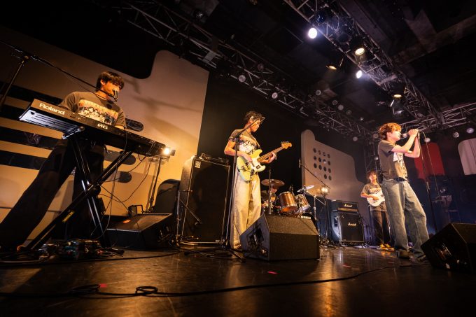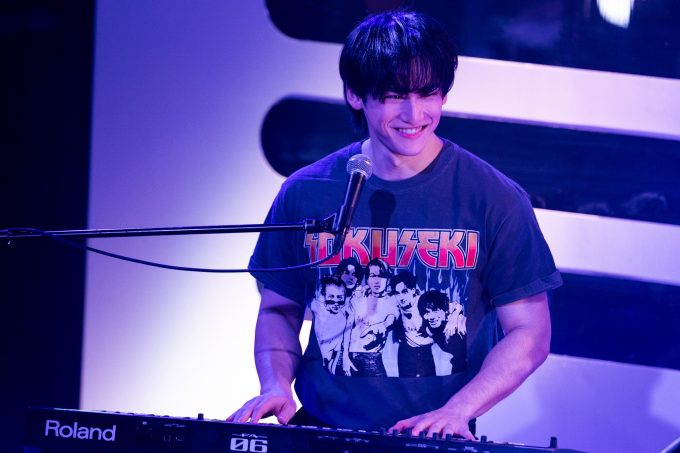 後半戦は、2月の『ホリアク』でも披露されたマカロニえんぴつ「恋人ごっこ」に加え、ASIAN KUNG-FU GENERATION「ソラニン」もパフォーマンスされた。イントロのギターサウンドが象徴的な楽曲で、樫尾のギターに続き、藤田のベース、橘のキーボードが一つずつ重なっていき、そこに樋口の歌声が乗る。サポートドラムの佐藤がそんな4人の音をしっかりと支えながら、熱い演奏が繰り広げられた。