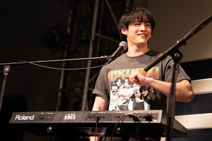 ここで樋口から今回の演奏が全部で4曲であることが告げられると、残り2曲ということで観客がざわつく。「早いですよね、僕らも思いました」と共感しつつも、4曲でも練習するのは大変で、ミュージシャンに対して尊敬の念が芽生えたと話すと、舞台袖から「お前もカッコいいよ!」とSokusekiのメンバーからエールが飛ぶ場面も(笑)。違うチームとはいえ、ともに俳優業の合間を縫って練習してきた仲間として、イベントを盛り上げていた。