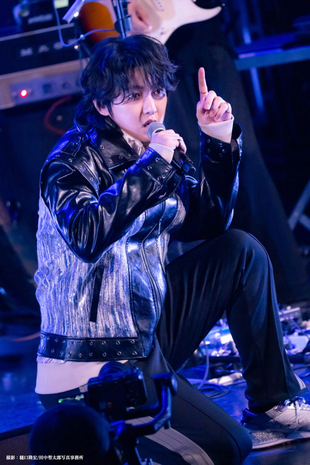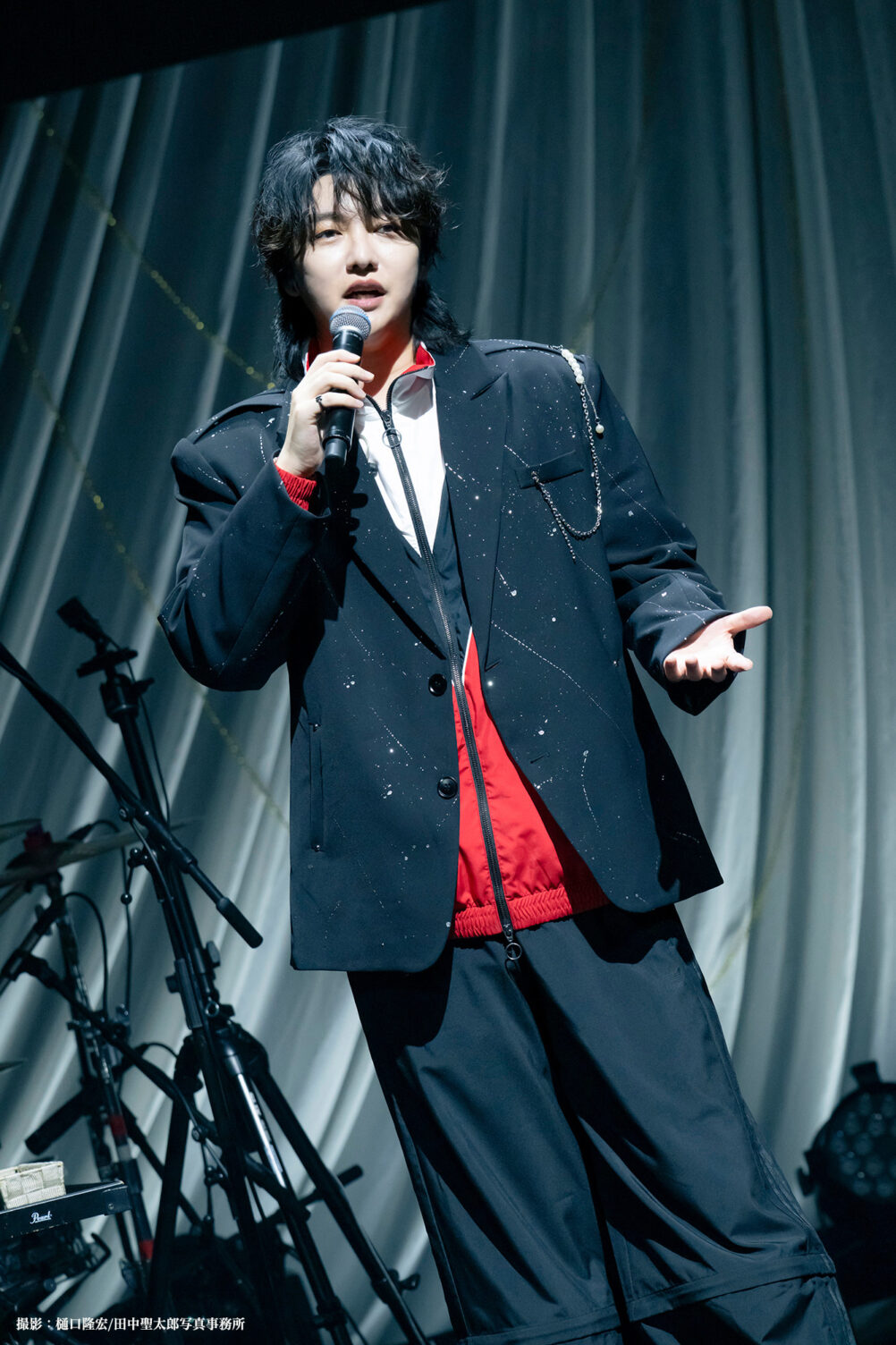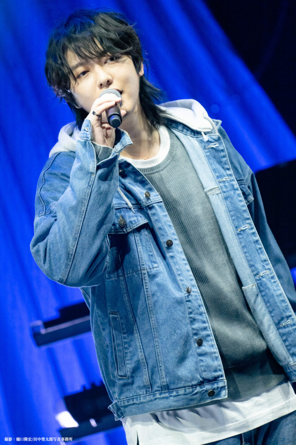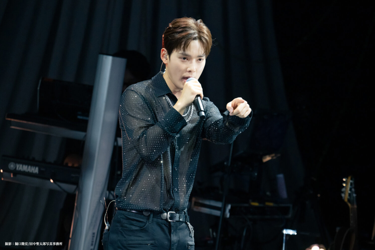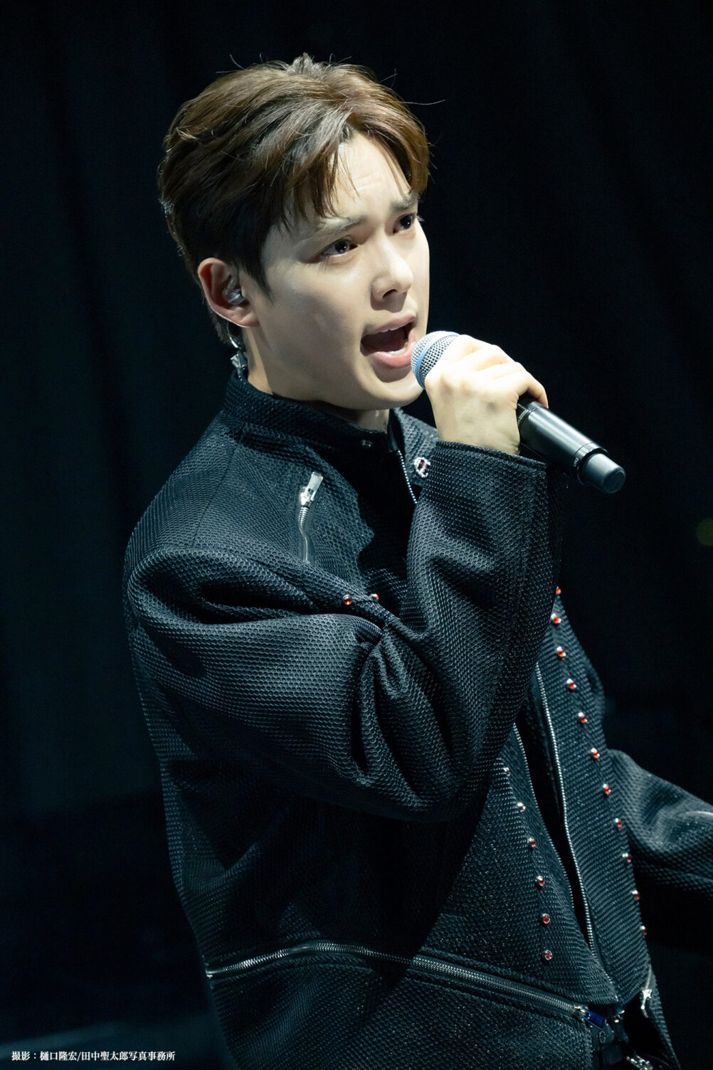 「우리의 시간에 (ウリエシガネ)」「KKI」と続けて熱唱後、 「「ウリエシガネ」は、ソロで初めて歌った曲で、アルバムを 自分で制作したいなと思ったきっかけの曲。とても愛情が ある曲で、セクシーな曲として皆さんに披露したくて。 「KKI」はCROSS GENEの曲ですが、ソロ曲としてアレンジを 加えました。どの曲も愛してくれると嬉しいです」と愛嬌を見せるも、「思ったより(皆さんの)テンションが低いので…」と ジョーク交じりに、客席の各エリアに向けて声援レベルを煽り、 ファンの熱も爆上がりに!