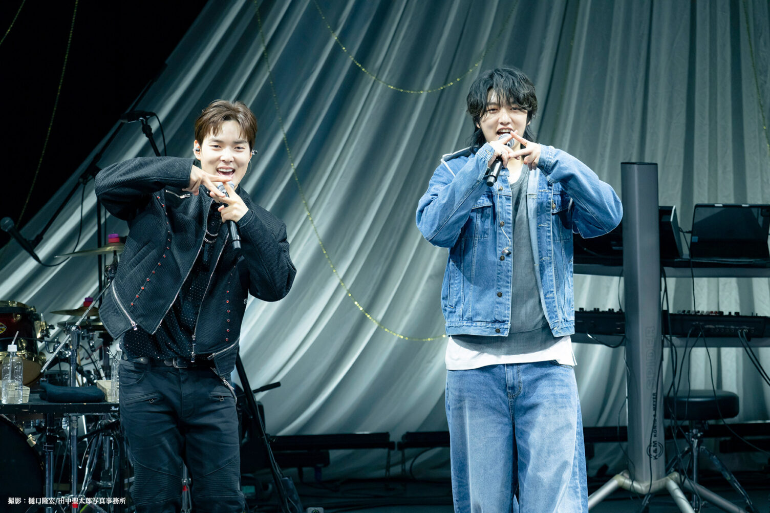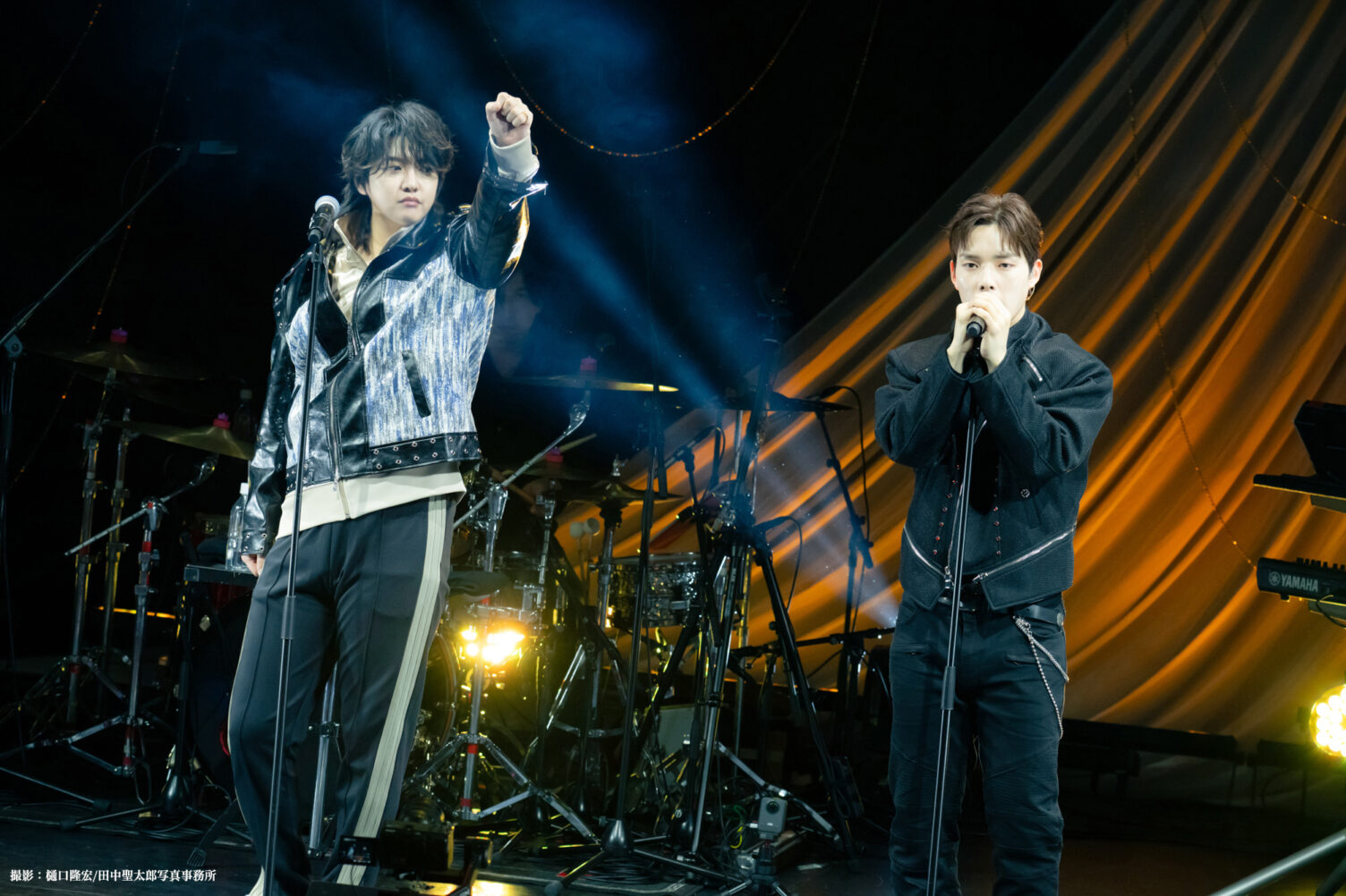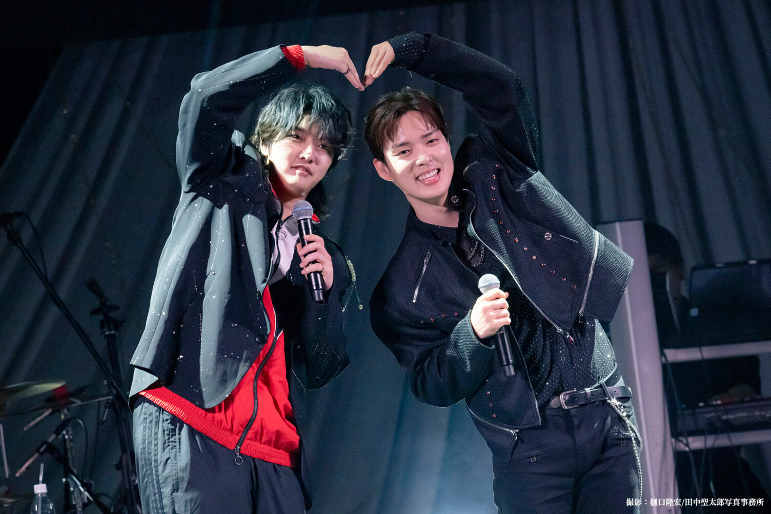場内のコールに応えるべく「雨のち晴れ」でアンコール として登場したシン。「楽しかったですか? アルバムを作って 披露したい気持ちもあった一方、やはり直接会いたいなと ずっと思っていました」と本音が漏れ、ヨンソクを呼び込む。 昼公演では「Serenade」を、夜公演では「What you think」で ファンと共に盛り上がる2人。ラスト曲である「sHi-tai!」では ファンの掛け声も相まって会場は熱狂の渦に包まれた。