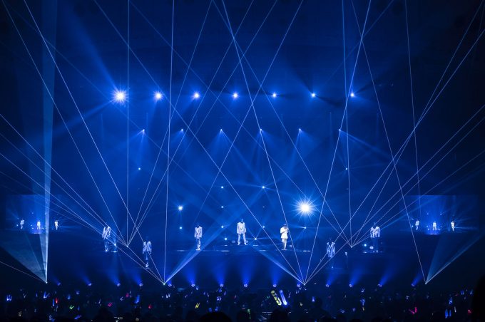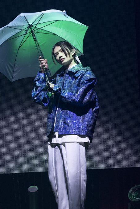 「Run away」はしっとりとしたラブソング。この流れは、なんていうか、お互いに愛を確かめ合っているような……。背面のLEDモニターには、メンバーのオフショット写真が映し出され、心はほっこり。十分すぎるくらいに愛を注ぎ合い、本編ラストの「Q」へ。映し出される歌詞。真っ直ぐに前を見据えてそれを歌う姿には、決意表明のような気を感じた。観測者たちもマスクの中で口ずさんでいる。