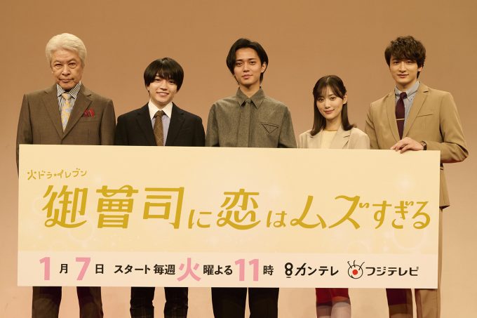 1月7日放送のドラマ「御曹司に恋はムズすぎる」(カンテレ・フジテレビ系毎週23時放送)の制作発表が4日、東京都内で行なわれ、出演者の永瀬廉、山下美月、西畑大吾、小関裕太、鹿賀丈史が出席した。