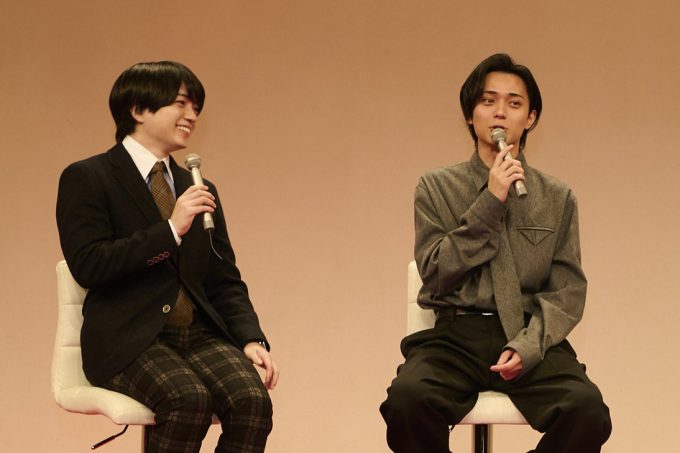 冒頭で、挨拶と共にお正月休みの過ごし方について聞かれると、主人公の天堂昴を演じる永瀬が「大吾と友達2人で初詣に行きましたね。僕、あんまりお正月は外に出ないんですよ。でも友達に誘ってもらったので大吾にも声かけて、おみくじを引いたり、スーパー銭湯に行ったりしました。初めてアカスリしてもらったんですけど、めっちゃ痛いですね。新年早々アイドルがこういう話をするのもあれですけど(笑)、縁起がいいなと思いながら」と笑いながら話すと、昴の親友・草壁友也を演じる西畑は「僕はアカスリじゃなくて、手押しのマッサージをやっていただきまして。めちゃくちゃ気持ち良くて寝ちゃいましたし、その後に飲んだ生ビールも超美味しかったですし、満喫できました。年越しは大阪でなにわ男子の配信があったので、そのまま実家に帰ってゆっくりして、いとこにお年玉あげました」と大充実のお正月を語った。また、ヒロインの花倉まどかを演じる山下は「乃木坂46のメンバーと朝までカラオケしていました。今まで年末はグループで歌番組に毎年出させていただいてたので、年末年始のお休みをあんまり体感してこなかったんですけど、今年はしっかり歌番組を観られました」と明かした。